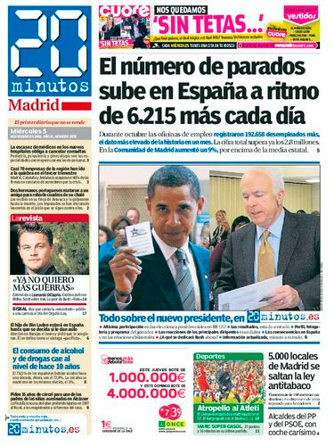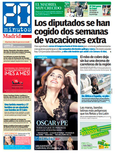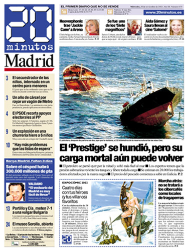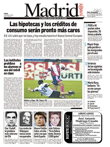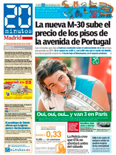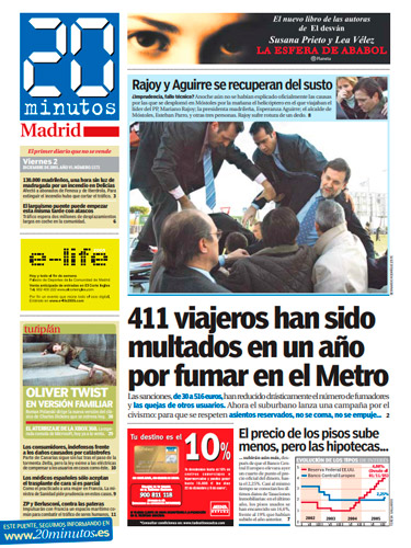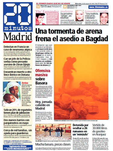 Ese pionero diario nacía un 3 de febrero bajo la cabecera de Madrid y m@s. Después se abriría Barcelona y m@s. Y luego serían más. Muchas más. En solo un año la cabecera se transformaría en algo que ha llegado a ser tan cotidiano, un paisaje más de las ciudades donde se reparte: 20minutos. Y esos periódicos llegarían, llegan, a miles de manos cada día. Un rotativo muy viajero, que se mueve entre las estaciones de los metros, los bancos de las ciudades, las mesas de los bares y los comercios. Y pasa de mano en mano con la misma vocación de aquel día: ofrecer la información más cercana, próxima, actualizada, social, plural… y veraz.